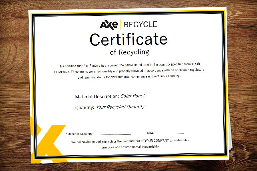 We provide a Certificate of Destruction for all incoming solar modules, certifying your waste has been properly recycled and responsibly disposed of.